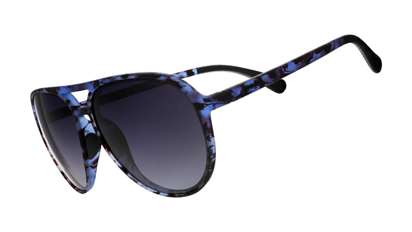Goodr MACH Gs are a classic aviator style made to give you the speed if you feel the need. Plus, this smooth, sleek frame means no unsightly imprints on your nose from those weird nose pads on traditional metal aviator frames.